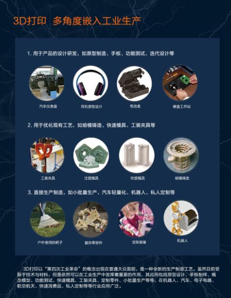 3、 直接生產制造,如小批量生產、汽車輕量化、機器人、私人定制等。